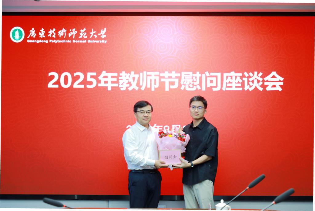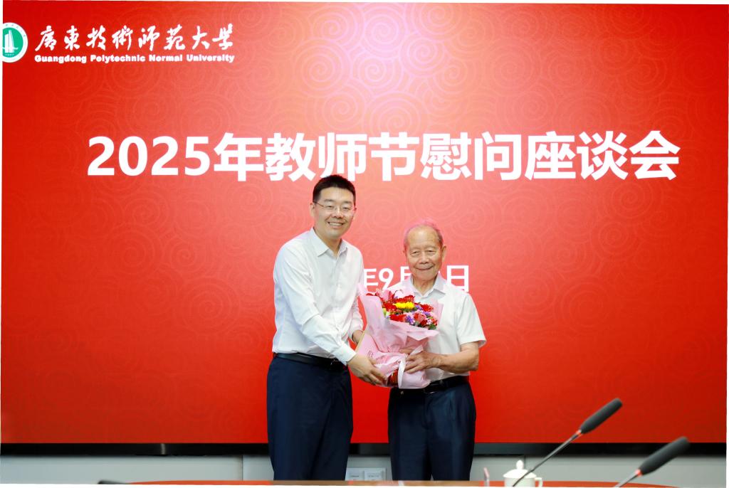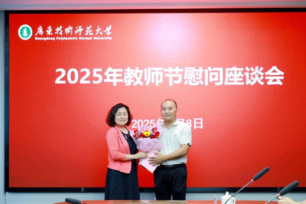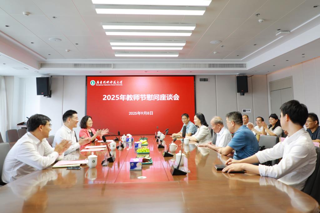 金秋送爽,桃李芬芳。为弘扬尊师重教风尚,凝聚奋进力量,激励全体教师进一步筑牢初心、勇担使命,在第41个教师节来临之际,9月8日上午,学校在工业实训中心801室举行教师节慰问座谈会。学校党委书记王兵、校长戴青云、副校长蔡君与各单位的教师代表欢聚一堂,畅谈育人心得,共绘发展蓝图,同庆属于广师大教育工作者的光荣节日。会议由戴青云主持。